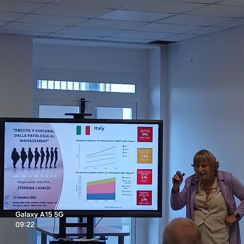 All’interno del’Ospedale Riuniti Anzio - Nettuno, in una sala riunioni gremita di Medici di Famiglia ed Operatori, si è svolto sabato 11 ottobre 2025 il corso “obesità e dintorni: dalla patologia al management” avente come Responsabile Scientifico la Dottoressa Stefania Casaldi che ha aperto i lavori con i saluti di rito oltre a quelli del Direttore Medico dell’Ospedale Riuniti Anzio – Nettuno, Dr. Ciriaco Consolante, e dell’Associazione EpaC – ETS. Sig. Francesco Silvia.