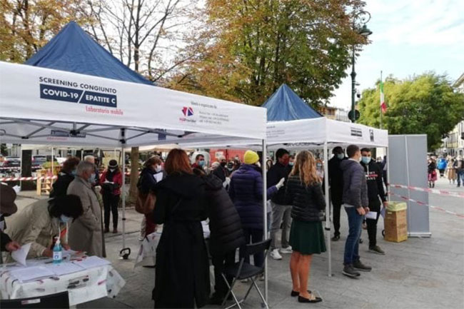 Bergamo, lunghe code per il test gratuito per Covid-19 e epatite C
