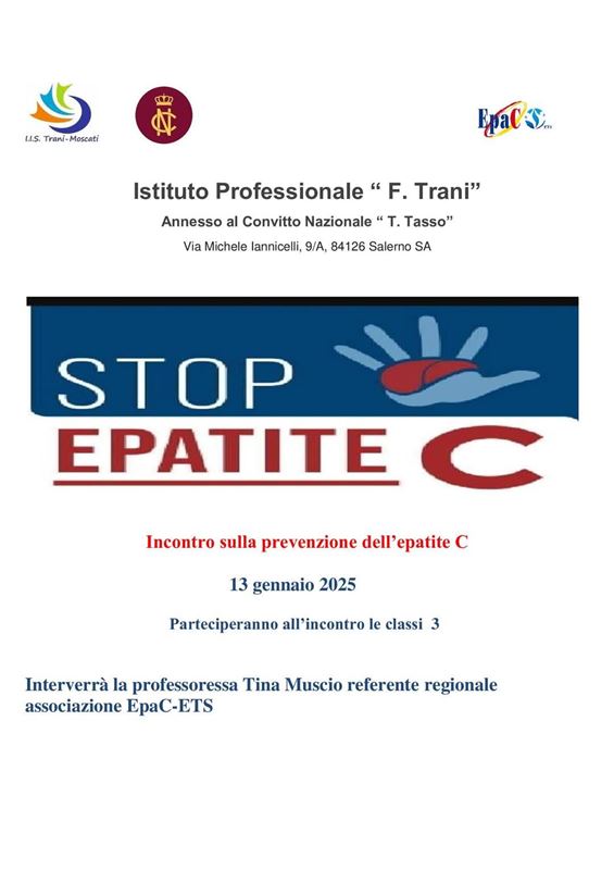 -ETS nella regione Campania, ha tenuto un incontro di informazione e prevenzione dell' epatite c con gli alunni delle classi 3 dell' IIS Trani Moscati Salerno .