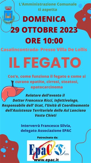 L’Amministrazione Comunale di Casalincontrada ed in particolare il Vice Sindaco Federica Montanaro, hanno organizzato un incontro informativo con la popolazione dedicato al fegato.