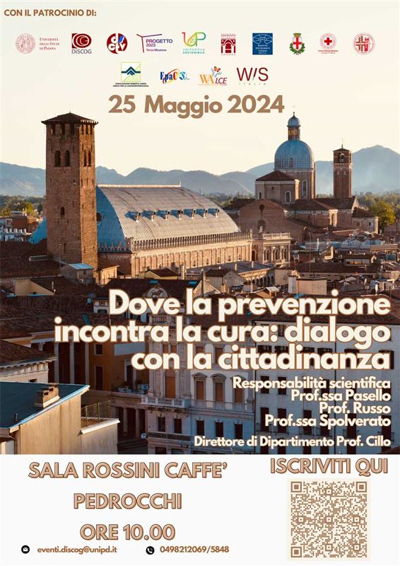 Padova sabato 25 Maggio 2024 presso Aula Rossini, Caffè Pedrocchi dalle ore 10.00 alle 13.00 si terra l’'evento "Dove la prevenzione incontra la cura: dialogo con la cittadinanza".