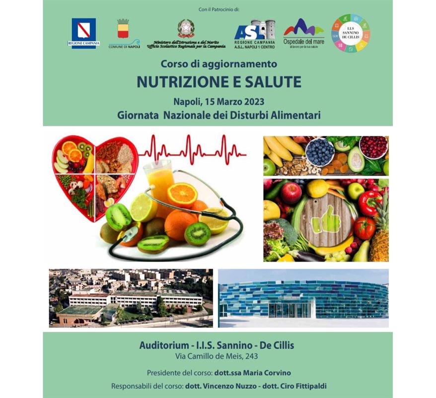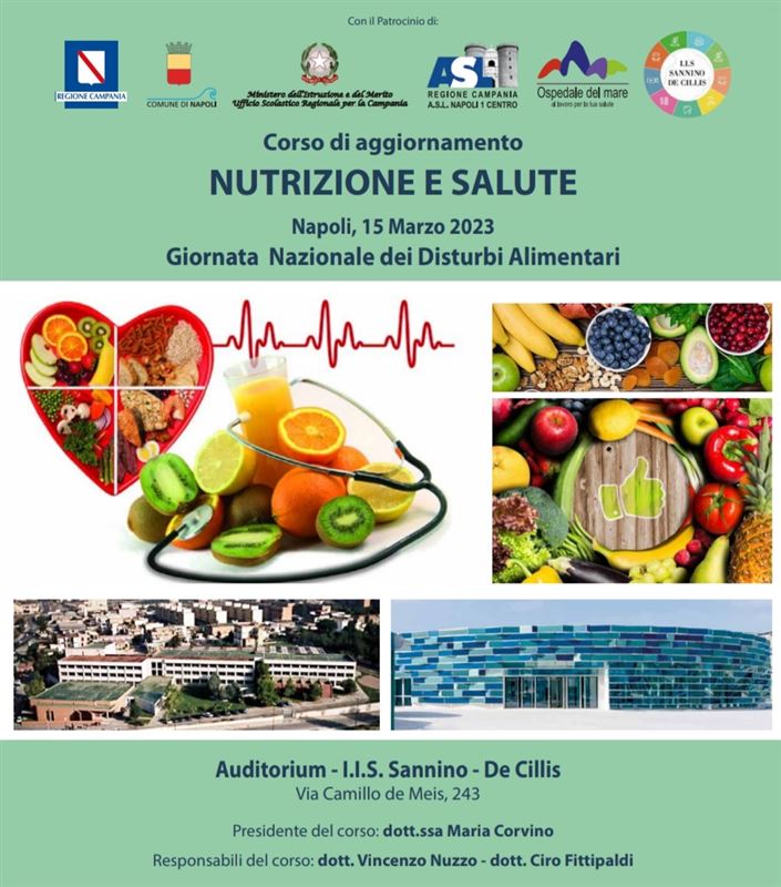 Il 15 Marzo 2023, in occasione della Giornata Nazionale dei Disturbi Alimentari, si è tenuto un corso di aggiornamento su Nutrizione e Salute presso l’auditorium dell’IIS “Sannino-De Cillis” di Ponticelli.