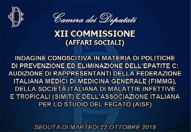Alle ore 13,10 la Commissione Affari sociali ha svolto l'audizione di rappresentanti della Federazione italiana medici di medicina generale (Fimmg), della Società italiana di malattie infettive e tropicali (Simit) e dell’Associazione italiana per lo studio del fegato (Aisf), nell’ambito dell’indagine conoscitiva in materia di politiche di prevenzione ed eliminazione dell’epatite C.