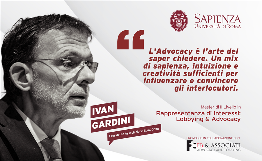 Ivan Gardini, Presidente Associazione @epac_onlus, è intervenuto durante il master in Rappresentanza di interessi: Lobbying & Advocacy promosso dalla @sapienzaroma in collaborazione con FB & Associati.