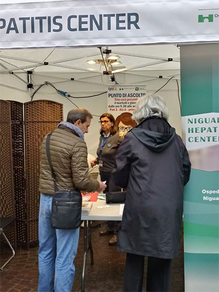 Presenti molti stand che rappresentano i vari servizi ospedalieri del Niguarda, non poteva mancare l’attività di prevenzione dell’Hepatitis Center rappresentata dalla Prof.ssa Maria Vinci, affiancata dall’Associazione EpaC, con la presenza di Rosanna Fontana e Tina Faretina.