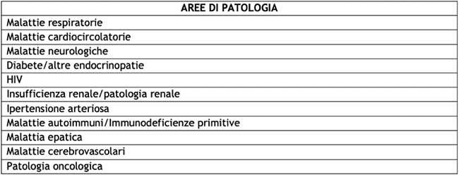 Tabella 3 - Aree di patologia (e relativi codici di esenzione) da considerare per la definizione delle persone con comorbidità, di età <60 anni, senza quella connotazione di gravità riportata per l'elevata fragilità
